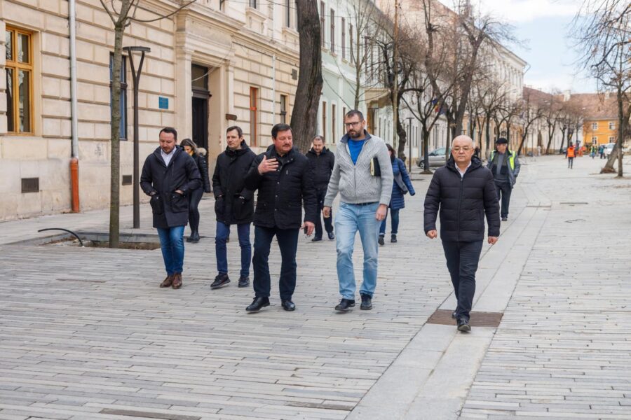 Primarul Emil Boc și citymanagerul Șurubaru împreună cu antreprenorul care modernizează o parte din zona istorica a orașului, adicăstr. Mihail Kogălniceanu și străzile adiacente Universității, Emmanuel de Martonne, axa nord-sud alcătuită din străzile János Bolyai – Hermann Oberth – Kovács Dezsö, Gaál Gábor și Baba Novac, au ieșit azi pe teren la verificare.