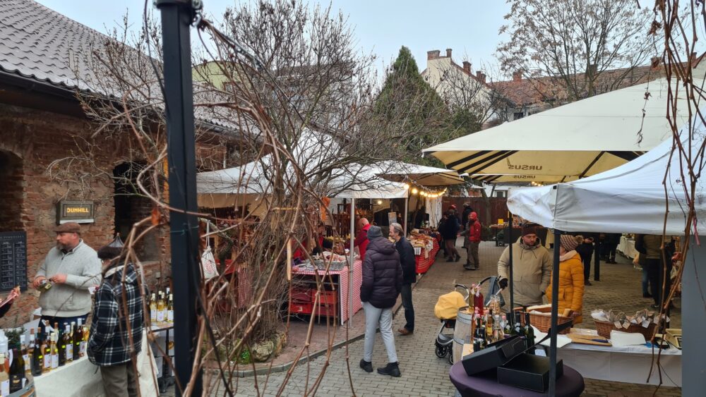 Vechea uliță medievală a Clujului, cu nume de rezonanță pentru cultura română, Inocentiu Micu Klein, terasa-curte interioară a Bulgakov Cafe și un eveniment deja de tradiție: Slană Fest. Pe un spațiu nu de mari dimensiuni, tarabe frumos aranjate, dichisite, își așteaptă mușterii. Organizatorii au deschis joi, astăzi, duminică, 19 februarie, e ultima zi. Mai e deschis până la ora 17.00 dar trebuie să vă grăbiți, unii comercianți vin de departe și s-ar putea să plece mai repede.